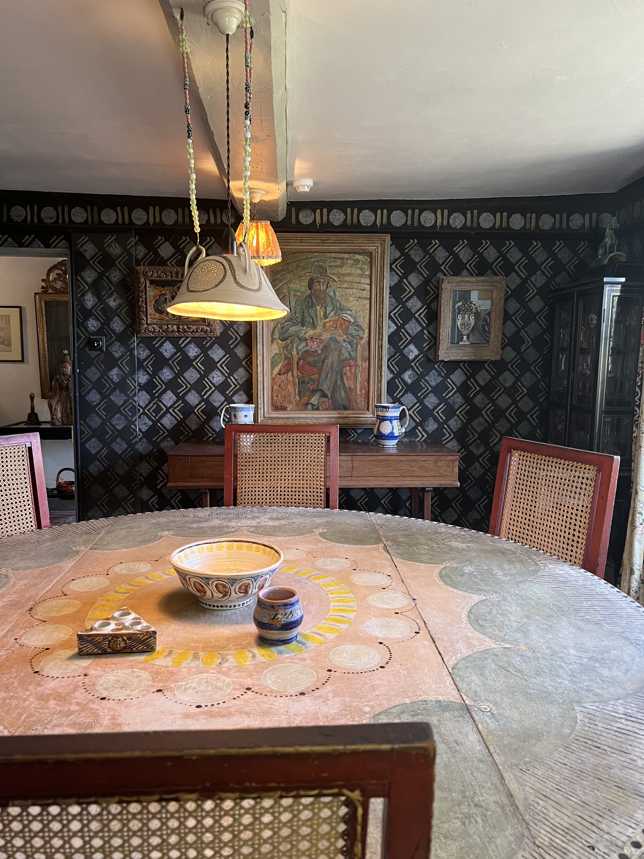 Her work combines references to folk art and decorative art tradition with the layered, collaged elements creating a sense of handcrafted beauty.